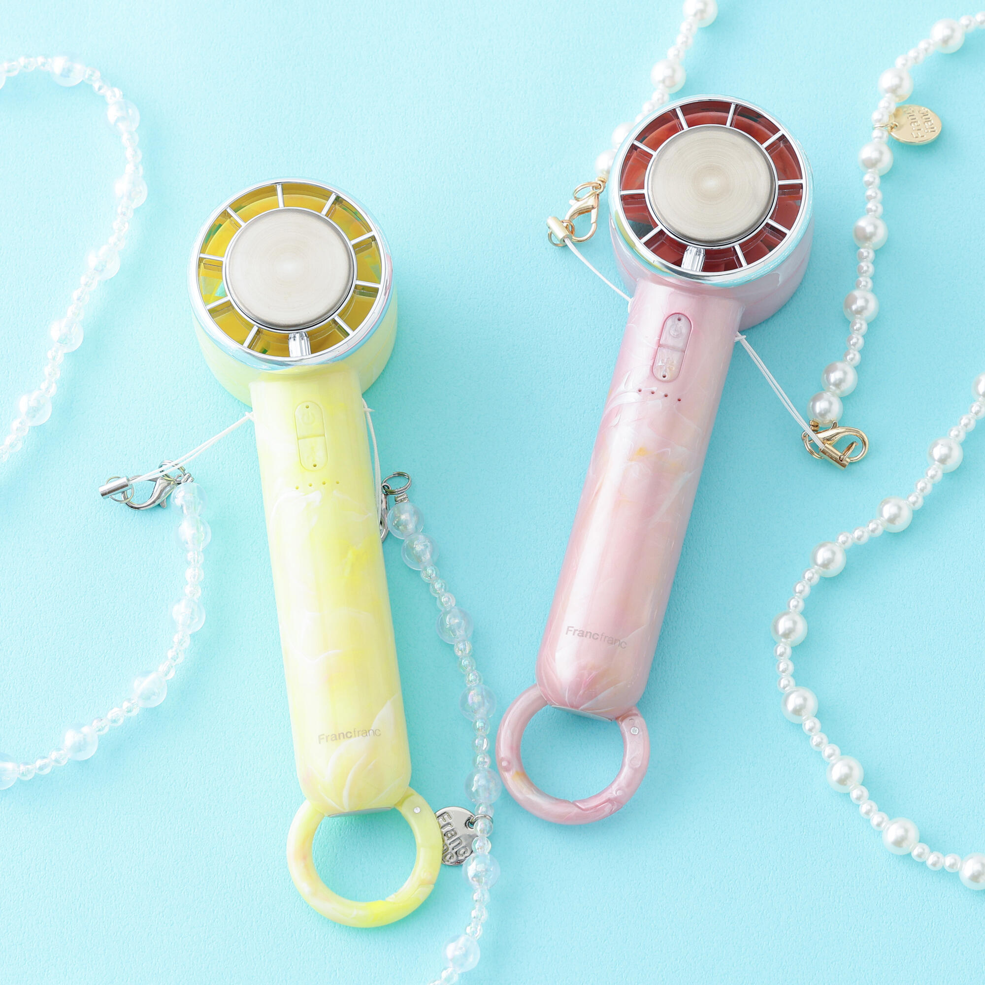 フレ アイスプレート ハンディファン シアーマーブル ピンク/イエロー ¥3,480(税込)